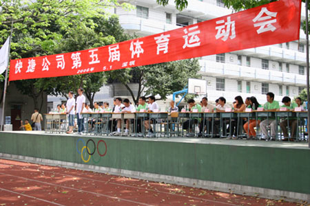 2006年5月1日,快捷公司第五届运动会在深圳西丽学校如期举行。在快捷公司董事长、总经理邱醒亚先生的大会致词后,第五届运动会正式拉开了帷幕。本届运动会比赛项目在原来的基础项目上又增设了如十人绑腿跑、袋鼠跑等趣味项目,绿色的比赛场地上一时间热闹非凡, 经过一天激烈的角逐后,最终由来自深圳的第二团队获得了团体总分第一名,并且本届运动会有男子100米、男子400米、女子400米、男子跳高等个人项目打破了纪录,祝贺各位获奖选手,并感谢公司领导和大会组织者与工作者对本届运动会的支持, 糖心视频在线。