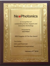 2013年度烽火通信最具潜力合作伙伴 新飞通光电 2013 supplier of The Year Award
