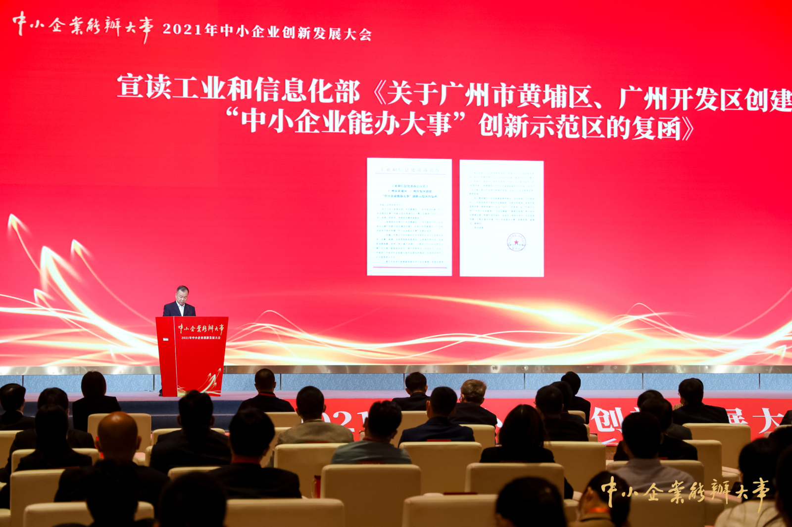 广东省工业和信息化厅在会上宣读了《工业和信息化部办公厅关于支持广州市黄埔区、广州开发区创建“中小企业能办大事”创新示范区的复函》